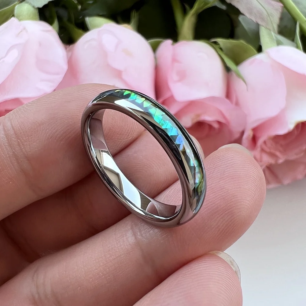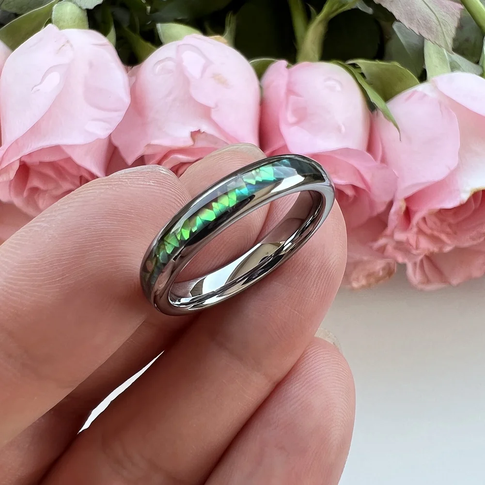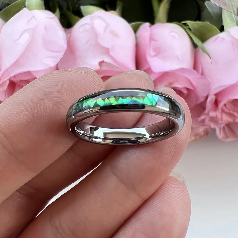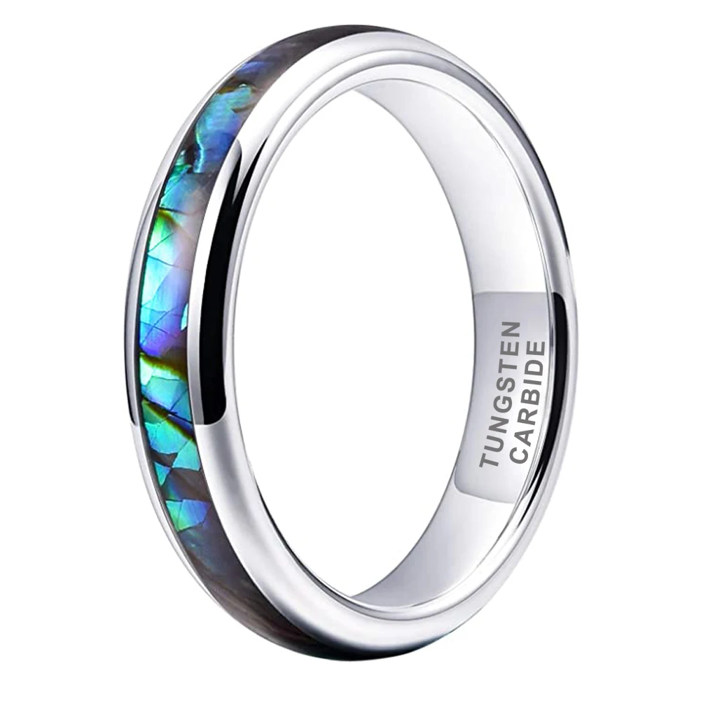 Coolstyle Jewelry 4mm Tungsten Carbide Ring for Men Women Wedding Band Abalone Shell Inlay Polished Shiny Domed Comfort Fit